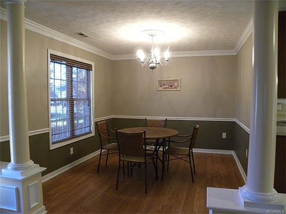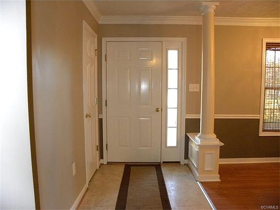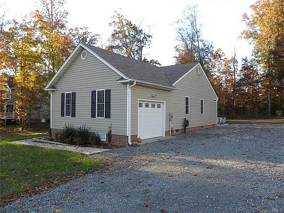 Wonderfully maintained like new vinyl ranch on .46 acre level lot backing up to woods with attached garage. Features open floor plan, formal dining room with columns, kitchen with bar/island, pantry, stainless appliances, microwave, disposal, flat top range, 42" cabinets, open to great room leading to deck, utility room, 3 bedrooms, 2 full baths, master bedroom with walk-in closet and ceiling fan, master bath with double vanity, shower with transom window, skylight, and linen closet. Attached garage is sheet rocked and painted with ceiling fan, auto door opener, utility sink, and workbench. There is an above ground pool with large deck, however the seller will remove the pool and finish the end of the deck if buyer desires. Convenient location close to New Kent schools!
