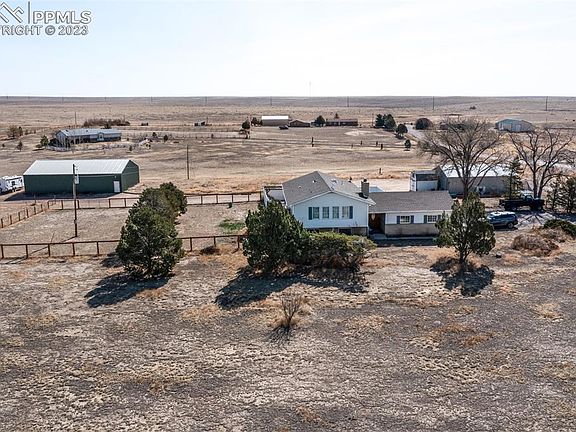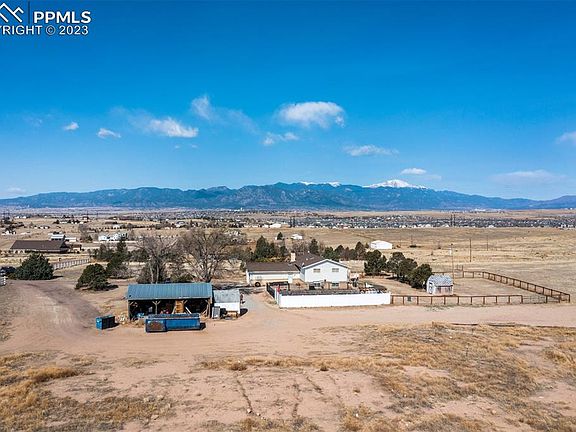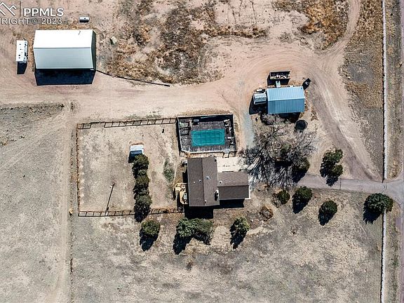 Country living 10 minutes from town in coveted Peaceful Valley Lake Estates . 6.7 acres at the highest elevation in the area resulting in amazing views of the front range and the Sangre de Cristo's in the distance. Upper level features hardwood floors, updated hallway bath, large master bedroom with amazing attached bath. Lower level features a great sized family room, updated bath, as well as two nice sized bedrooms. Outside you will find a fenced in-ground pool with custom concrete and gazebo, a 27x50 loafing shed, and fenced area for your pets. To top it all off you can enjoy a 2 year old 40X60 pole barn with concrete floor, water and electric!