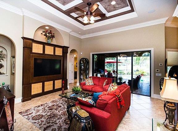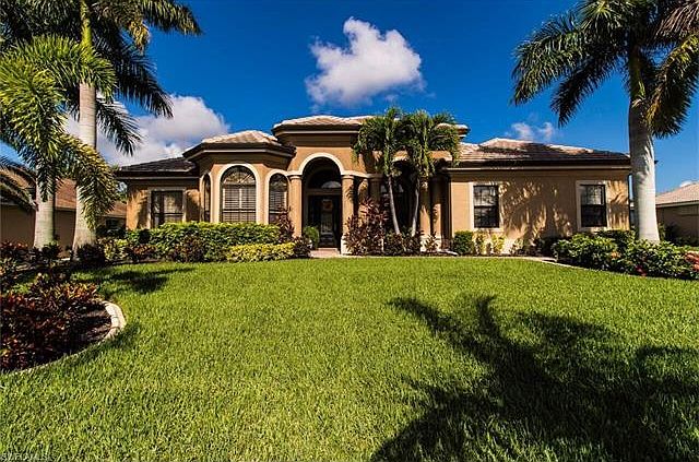 "LUXURY DEFINED", Custom Built Home with every Upgrade you can imagine. Located in Prestigious Cape Royal, the Cape's only Gated Golf Community. Imagine playing a Round of Golf in the morning & then Fishing Famous Waters of SWFL in the afternoon, Public Boat Ramps are within a short 5min drive. Home boast just under 2500 sq ft of living area, 4beds, 3baths + Den. Approaching the Front Entry, you are immediately drawn to the Home's Impressive Architectural Details, Grand Columns, Spectacular Dome Ceiling in Dining Room, Barrel Ceiling in Entry, Intricate Coffered & Drop Down Tray Ceilings, Crown Molding, Custom Baseboard & Trim in every room! Gourmet Kitchen with Exotic Granite & High-End SS Appliances. Great Room features an Amazing Entertainment Wall with 70" TV, Surround Sound & Music thru out the entire home! Recent updates include Beautiful Hardwood Flooring in Master & Den, New Carpet in Bedrooms, Custom Blinds, Plantation Shutters & New Kitchen-Aid Refrigerator, No expense was spared! Exterior of home is surrounded by Lush, Tropical Landscaping, Gorgeous Pool with Enormous Spa overlooks the 2nd Green. 3-Car Garage with room to store your boat. It Just doesn't get any better!!