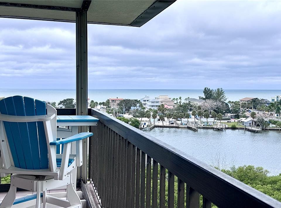 One or more photo(s) has been virtually staged. The Premier Penthouse at Shipwatch -- Just Over the Bridge from Indian Rocks Beach. This building has passed all Milestone Inspections and has Fully-Funded Reserves! Welcome to Unit 841, a rare TOP-FLOOR CORNER residence offering YEAR-ROUND, PANORAMIC Gulf & sunset views -- the best this side of the bridge. Imagine enjoying all the beauty of beachfront living without the hassles of Gulf Blvd traffic or direct beachfront upkeep. This two-bedroom, two-bath home boasts an expansive wraparound balcony where you can savor sunset skies, pelicans in flight, and boats cruising along the Intracoastal. Inside, the primary suite features a beautifully renovated bathroom with a dual vanity, walk-in shower, and spacious walk-in closet (check out the floor plan!). The kitchen, complete with granite countertops, flows seamlessly into the dining space and breakfast bar -- perfect for everyday living with water views while you dine. Shipwatch is a vibrant, resort-style community offering amenities for every lifestyle: a welcoming clubhouse with social activities, two pools, a fitness center/gym, tennis and pickleball courts, walking paths, a car wash station, and a first-come marina (with a private boat slip also available for purchase separately by Shipwatch owners only). The monthly condo fee conveniently covers water, sewer, trash, insurance, and fully funded reserves -- ensuring peace of mind and a well-maintained building. Unit 841 at Shipwatch Tower 2 offers convenience, community, coastal charm, and potential value-add in an unmatched Florida living experience, at an exceptional price!