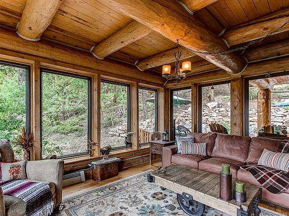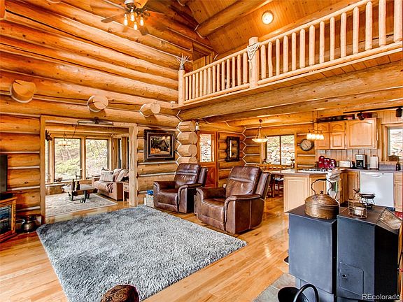 This one of a kind Custom Log Cabin is a rare find. Full scribed saddle notch logs make this home a Architectural gem. Upon entering, the cathedral ceilings and sweeping views will impress. This 4 Bed, 3 Bath home is perfect for mountain Living with easy access to the city and Penny Road is paved and plowed by county. New Anderson windows throughout the entire home, new Anderson doors, newer roof, new master bath and so much more. Interior logs have a clear coat finish. There is a high efficiency Harman pellet stove on the main floor, gas fireplace on lower level and hot water heat. Large 3 car detached garage, which has space above for a studio or finish for mother in law apartment.... possibilities are endless. The home also has a generator plug-in panel system. Enjoy over 3 acres of a private sanctuary with pine trees, aspens and wildlife. This home has been meticulously maintained and built with quality craftsmanship. Majority of furnishings are available for purchase.