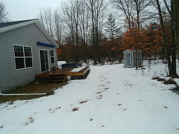 Come and check out this nearly new, pristine home with an open concept kitchen/dining/living room on 10 private, wooded acres. The home has 2 bedrooms and all appliances to stay, including a freezer. A new 12x16 deck with awning was installed in 2018. Enjoy the hot tub which was new last year! There is plenty of storage in the 4', lighted, heated crawl space and the 24X40 pole barn. The property has an area that was used for a garden and an underground dog fence has been installed.Some furnishings may be included with an acceptable offer.