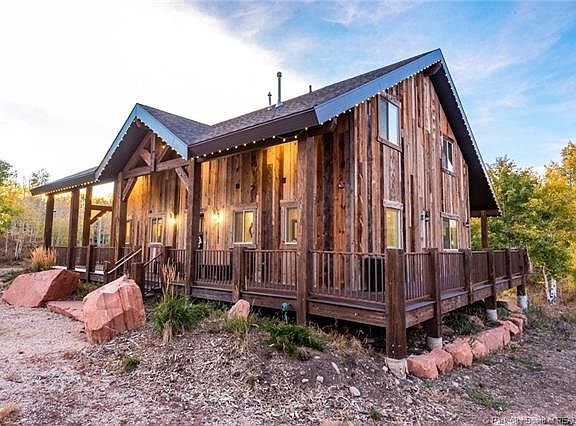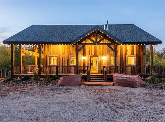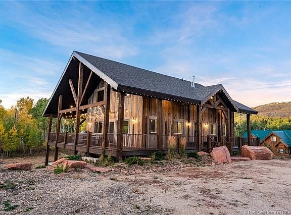 Iconic reclaimed barnwood cabin, located on .75 wooded acres and backing a natural pond. Newly constructed in 2016, this mountain home boasts chic modern finishes balanced with elegant natural beauty. Tastefully decorated with rustic and contemporary decor and offered turn-key for immediate enjoyment. Fully finished to afford space to host large gatherings. ATV garage provides storage space; additional space on the property for a future garage. Timber Lakes is a private, gated, residential/recreational mountain community 7 miles east of Heber. 12 minutes to Heber, 30 min to Park City. Enjoy golf, fishing, boating, skiing, hunting, ATV-ing, and all the amenities of the Heber Valley & Park City at your fingertips!