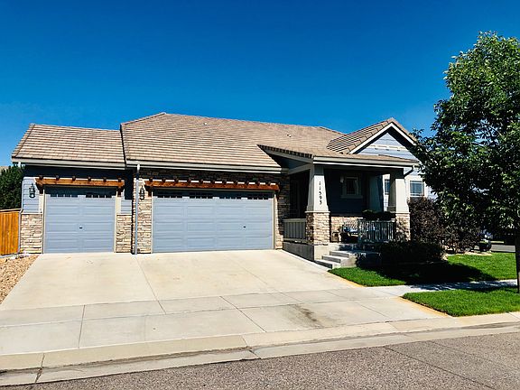 Beautiful ranch in Commerce City! This home greets you with stunning Engineered wood flooring, an open layout & tons of natural light. Home cooks will love the gourmet kitchen featuring an over sized granite island, SS appliances, gas range & pantry. Cozy up to the fireplace on cool Colorado evenings. Retreat to your main-floor master boasting an en-suite 5 piece bath & walk in closet. Deep 3 car garage is insulated & includes ample overhead storage & high-intensity lighting. Unfinished basement has rough-in plumbing for 3 bathroom & crawl space for additional storage. Relaxing and private backyard with sprinkler system, garden beds & concrete patio. Home is ideally located on a corner lot with mature trees & is directly across from neighborhood park. Book your showing today!
