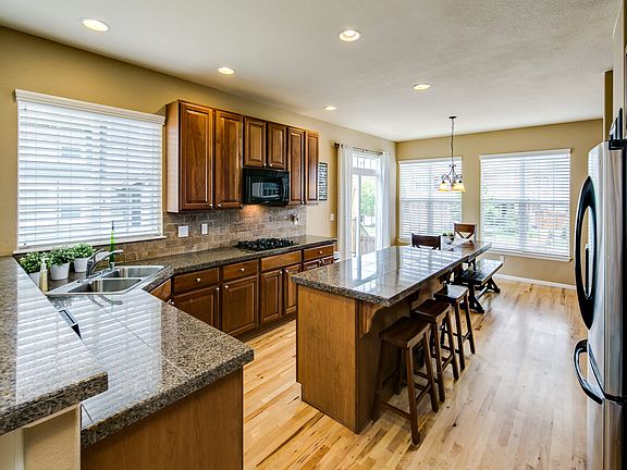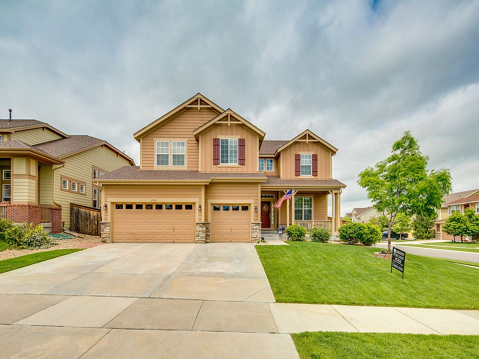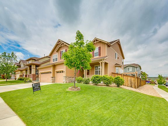 Updated family home has sunny gourmet kitchen, newly finished basement & loads of upgrades. New hickory hardwoods greet you at the door and extend past elegant curved staircase to family hub. Cook's kitchen has sleek granite, butler's pantry & eating space w/ work desk. Breakfast bar & island let you chat during meal prep. Bright family room has gas fireplace & media alcove. Restful master suite has 2-way fireplace, 5-piece bath w/ updated sinks & counters, walk-in closet w/ built-in dresser & seating area w/ view of the Front Range. Huge upstairs loft can serve as movie lounge, homeschool, or exercise space. Main floor study has ceiling fan & French doors. Newly finished basement adds a carpeted rec room, 5th BR & beautiful 5th bath. All bathrooms are updated. New carpet on main. Backyard has Trex deck & flagstone patio under wooden pergola. 2 blocks from playground & park. 15 minutes from Tech Center & 2 malls. 5 minutes to hwys. A great home for a family that appreciates space!