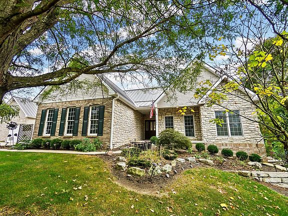 Watch the Video & 3D tours of ''The Fun House'' | If entertaining is your thing, this ranch home with a walkout basement has a little land with a lot to love. Outside, you have a beautiful 1.89 acre lot with a heated pool (including a retractable cover), multiple patios, a deck, firepit, and a large detached garage building (plus an attached garage). Inside, bamboo flooring runs throughout the first floor living spaces where large windows bring the outside in. There is space for a morning or dining room on one side of the kitchen (that features leathered granite) and your daily table on the other. Your owner's suite has two huge walk-in closets. The walkout basement is complete with a bar, lounging area, room for a pool table, and another full bath
