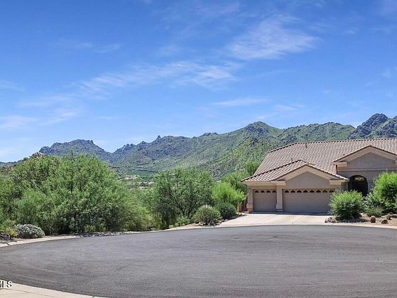 Very motivated seller Premium location with views! Centex home in Dorado at Troon Village is tucked away on a private cul-de-sac with elevated lot positioning for views of Troon Mountain, McDowell Mountains and Tom's Thumb! Backyard has a private feel with NAOS on both the North and East sides of the property including a natural Quartz mountain hill top. Enjoy the North/South exposure from the sparkling pool, large covered patio, and lounge/dining deck spaces. Inside the home you will find a single level, no steps floor plan with 3,174 square feet of split living space. On one wing of the home is the large master bedroom with exterior access and a Roman stand alone bath with dual vanities, separate stand alone shower, and a walk-in closet. Down the hall you'll find a modern office space w access to the adjacent bathroom. In the heart of this home, enjoy your open floor plan. Kitchen has been completely remodeled with brand new cabinets and modern counter tops. The family room boasts a centerpiece gas fireplace with built in shelving and added windows so that your main view is Toms Thumb! This house has been completely redesigned to give it a more modern/ open feeling. Don't miss your opportunity at owning a completely redesigned home in the highly sought after Troon neighborhood.