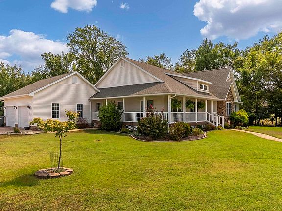 If LOCATION and LIFESTYLE is important to you, BETTER COME LOOK at the 3600+ sq ft, 4 bedroom, 3 1/2 bath like-new home built for life's pleasures. Situated on 2.77 AC in Carterville, overlooking a stocked pond, you'll enjoy privacy only 5 minutes from town. Pretty wrap around front porch, extra-large great room with cathedral ceiling, stone fireplace, and a full wall of windows where natural light abounds. Adjacent is a kitchen with granite counters, tile backsplash, newer stainless appliances and large walk-in pantry. Master suite features walk-in closet, jet tub and tiled walk-in shower. Lots of updates in past 4 years including TRANE heat pump, kitchen appliances, whole house filtration, ceiling fans, plumbing fixtures. Full, partially finished basement features family room with fireplace, plus a separate Recreation room with wet bar, wine and beer cooler, recessed lighting, and new luxury vinyl flooring. FIVE Large egress windows and 9' ceilings give lots of light. Over 1000 sq ft of mechanical room and storage in unfinished basement area. In addition to 26'x26' attached garage, you'll find a 24'x40' outbuilding for your RV, pontoon, 4-wheelers. Why postpone happiness? See it today.