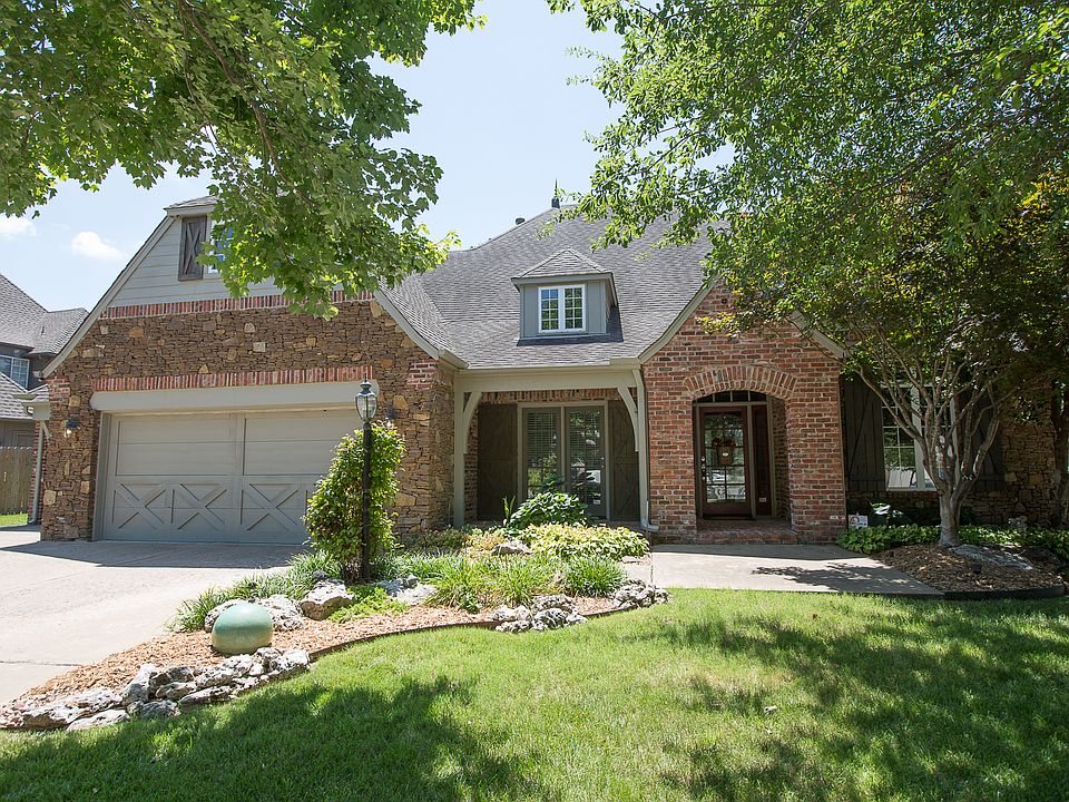Transitional updates and fabulous Outdoor Living in Bixby North's Graystone! Spacious open plan with designer lighting & paint, gorgeous hardwoods, plantation shutters, sweeping arches and soaring ceilings. Granite & Stainless Steel Kitchen with walk-in pantry, gas cooktop and double ovens, inviting Family Room with stacked stone fireplace and custom built-ins, elegant Formal Living and Dining Rooms, private Study with wall of built-ins and lavish Master Suite with fabulous dressing closet and updated luxury bath finish off the well-designed first floor. Game/Media Room, 3 large Bedrooms, Pullman Bath, Hall Bath and huge walk-out attic upstairs. Custom outdoor living with Trex decking, cedar arbor covered hot tub, fire pit and water feature. New HVAC in 2014, storage shed with power, sprinkler system and extensive landscaping with decorative lighting.