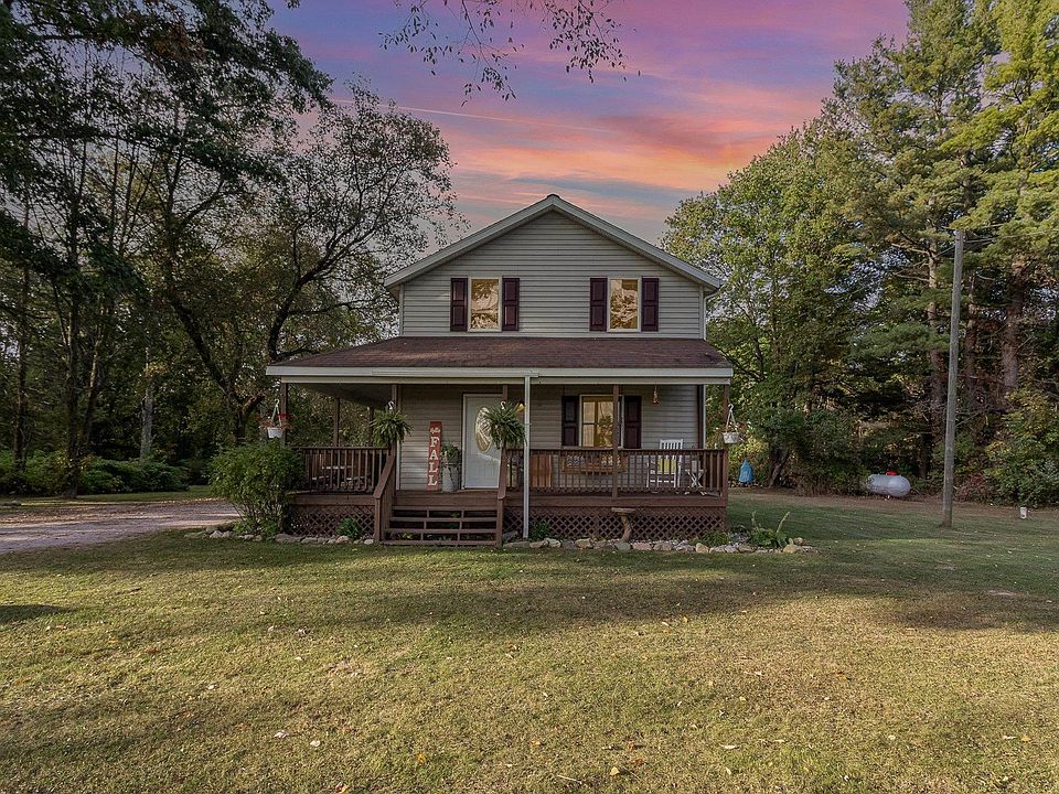 Nestled in a serene wooded area within the Chippewa Hills school district, this charming 3 bedroom, 1.5 bath home sits on a generous 2.2 acres of secluded land. It boasts original wood floors that add character and warmth throughout the living spaces. The spacious kitchen seamlessly opens to the living room, creating an inviting atmosphere for family gatherings and entertaining guests. Each of the 3 bedrooms is generously sized, providing ample space for relaxation. The full basement offers great potential for storage or a workshop, catering to various needs. Home offers a newer well and fenced in area for children and pets. Enjoy the outdoors from the wraparound porch, perfect for unwinding or hosting friends. Sale can include furnishings if buyer desires. This turnkey-ready property combines comfort and convenience in a picturesque setting, making it an ideal retreat for those seeking tranquility and space.