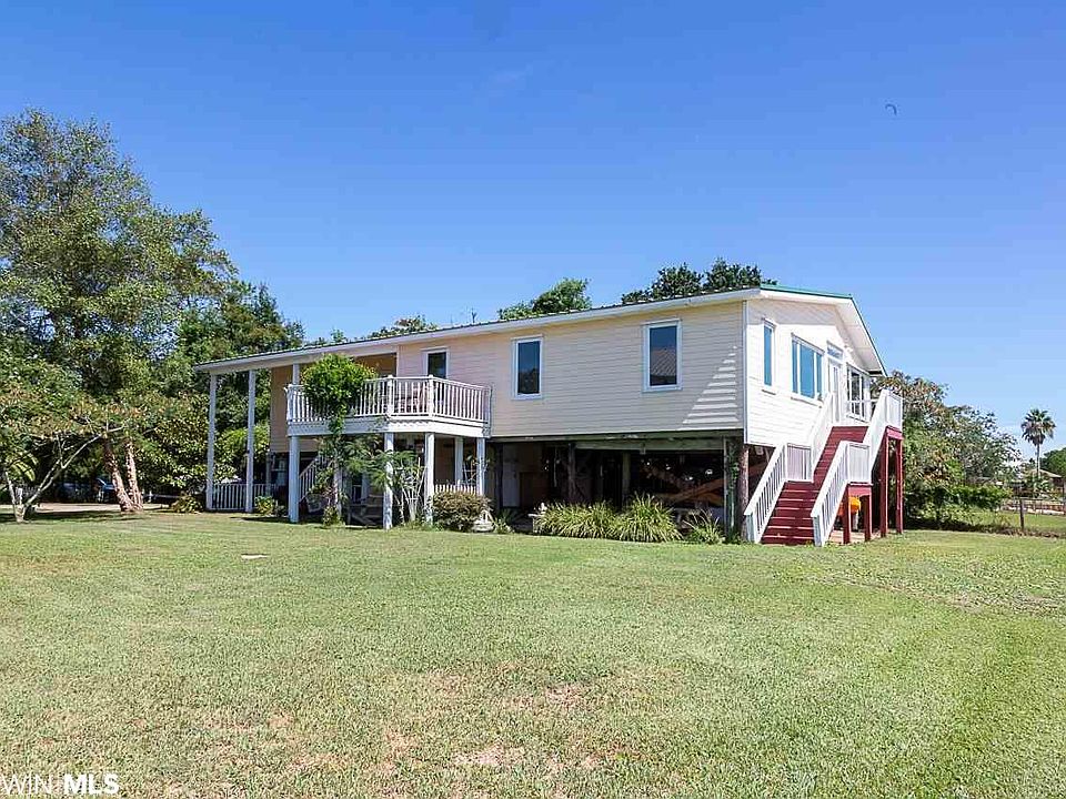 Classic raised Bay House on double lot with 107 feet of waterfront living! Very open floor plan with tons of natural light and great living space! 38 x 12 sun-room with the large new low-E windows makes for a great area to relax with an enormous scope of panoramic views or entertain a large group. New Low-E windows have been installed throughout the home with custom fitted storm shutters. Kitchen has a gas cook-top with custom cabinetry and accordion shelved pantry. Bedrooms and hallway have classic wood floors. Master bedroom has an en-suite bathroom. Below the home is a level concrete ground area with loads of storage and large storage room. There is also a cool hidden outdoor shower area. The bulkhead is heavily reinforced with large riprap rocks and timbers. Property is fenced with a circular driveway. Lot is also heavily landscaped with a gazebo and large mature trees that provide a beautiful canopy without obstruction any of the Bay Front Views, which is the reason you want to live here!!