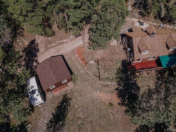 Welcome home to your mountain property paradise in the Green Valley region of Conifer. This 1.5 story secluded stunner is nestled on an incredible 7.69 acres, zoned A-2 and ready to be your private mountain sanctuary. Original hardwood floors, log beams, rustic details, and abundant natural light showcase the welcoming energy throughout this lovely home. Main floor features a farmhouse-style kitchen and dining room, large living room with masonry wood-burning fireplace, big bedroom, full bath, laundry room. Two spacious bedrooms, 1/2 bath, walk-in closet upstairs. Amazing deck overlooking the beautiful, private yard. Fire pit and seating area out back are perfect for quiet mountain evenings with family or entertaining with friends. 864 SF unfinished walkout basement offers value-add opportunity. 400 SF detached 2-car garage built in 2020 provides plenty of room for trucks and mountain toys. Chicken coop and garden areas to nurture the farmer spirit. 1250 gallon septic system recently serviced and inspected by Shirley Septic, use permit is on hand to transfer. New roof installed on house 10/16/2023 with transferable warranty. 2 interior electrical panels: 1 in dining room behind wall panel, 1 in basement. Surrounded by world-class fishing, hiking and biking trails. Close to all that the enchanting town of Conifer has to offer. County-plowed road means you'll never get snowed in. Commuter's dream with easy access to 285. There is no other Conifer property on the market in this price range with this much acreage and mountain charm. Rare opportunity to own a mountain dream property. Land Title confirmed ILC in Seller's possession sufficient for OEC and new ILC is not necessary. Property sold As-Is. Buyer shall have the right to inspect the Property. But the Price is the Price: $580K.