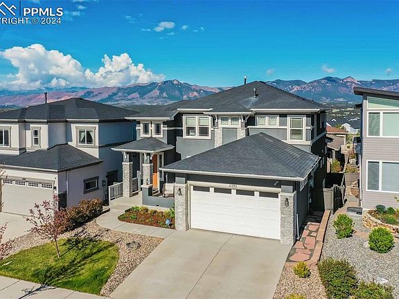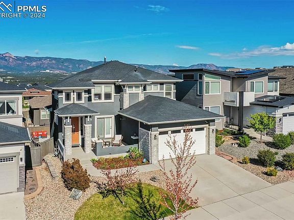 Set against the stunning backdrop of sweeping Mountain Range, Pikes Peak + Air Force Academy views, This expertly crafted Craftsman Style designer home in the desirable Farm Neighborhood offers endless amenities + perks! Step inside and you are greeted by a grand vaulted entry + an open-plan design w/9’ Ceilings throughout, 8’Doors on main + upper levels, engineered wood floors, walls of windows framing astonishing views + choice design options. The chef’s kitchen boasts ample cabinetry w/42" Uppers, Granite Countertops + backsplash, stainless steel appliances including a new Kitchen-aid range/oven (2022), New Kitchen-Aid microwave (2023) + Wine Fridge + hood that vents to outside, large center island + opens to the dining nook w/walkout for effortless entertaining. Walk out to the covered, composite deck w/stunning views + overlooks the backyard boasting a covered concrete patio + an uncovered paver patio. Back inside is the Great Rm highlighting more views + a gas fireplace w/stacked stone surround. Completing the main is a flex room ideal for office/play room/reading/sitting room or formal dining room w/french door leading to front courtyard + mud room that leads to the 3 car garage. Upstairs boasts an Owner’s Suite + 2 Additional Bdrms, Laundry RM + Full Bath. The Owner’s Suite is a true Oasis with incredible Mountain Views, a Spa Inspired 5pc Ensuite w/Granite Countertops, walk-in Shower w/Bench, Soaking Tub + Walk-in Closet. The recently finished walk-out basement features 9’ ceilings, Large Bedroom w/ample room for a sitting/study area and 3/4 Bath. Extras: 3 Car Garage w/Storage, 2 A/C Units + 2 Furnaces for Added Comfort, New Faux Wood Blinds (2021), D20 Schools + More! Community Features: Rec Center w/Seasonal Pool, Gym, Gathering Spaces, Events, 135-Acres of Natural/Wildlife Preserve Open Space & a community trail system connecting to the LaForet Trail & the New Santa Fe Trail. Across from USAFA w/easy access to Shopping, Dining, I-25, Powers + DEN!