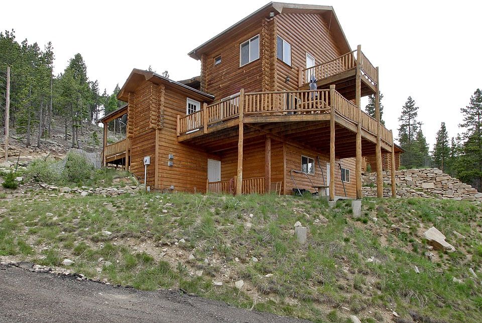 Stunning whole log home with incredible views of the mountains, continental divide as well as the city! Situated on 2.85 acres with horse rights, this home is the perfect retreat. Vaulted great room w/ gas log fireplace, dining room with new hickory floors, spacious kitchen w/ center island and large walk-in pantry. Master boasts a private balcony with incredible views, five piece bath and jetted tub. Enjoy indoor/outdoor entertaining with a spacious recreation room, wet bar, stunning views from the deck, bocce ball court, swing set and fire pit! 3 car garage with space for an RV. This home is a must see!