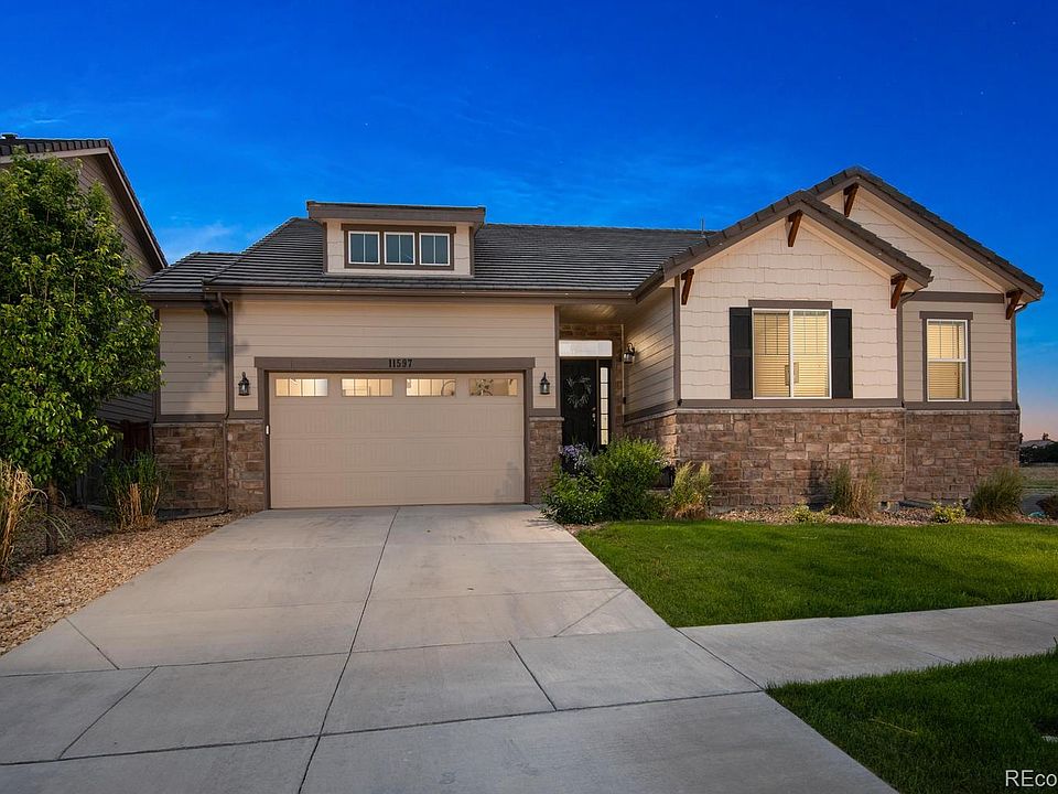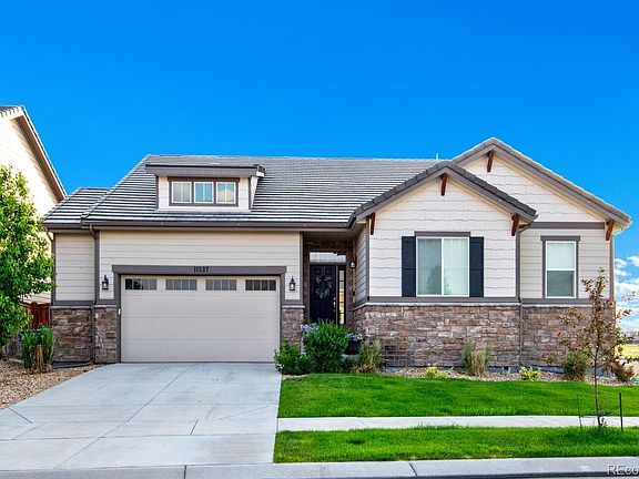 Location, Location, Location - Amazing 5 bedroom 3 bath ranch on a corner lot, next to open space, park, and across the street from Buffalo Run Golf Course! Full professionally finished basement with massive great room, 2 bedrooms, a full bath, and tons of storage. Main floor has a open floor plan, gourmet eat in kitchen, master suite with 5 piece master bath, two other bedrooms, another full bathroom, separate laundry room, and 1/4 bath. The huge kitchen boasts beautiful granite counters and island, upgraded cabinets, coffee/bar nook, huge pantry, and newer stainless steel appliances. This home is move in ready -the attached garage is oversized, back yard is fully fenced, front and back sprinkler system, roof is concrete tile and pride of ownership shows throughout! Welcome Home