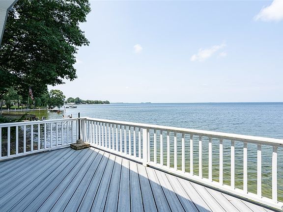 What a view and you do not get any closer to the water than this, 75 feet of waterfrontage home features large, heated porch to gaze over the endless view of the water. Large Livingroom 2 baths and 2 bedrooms nice laundry room and mud room combination. Has a small shed and a hugh garage that will accommodate a RV Motorhome or boat.
