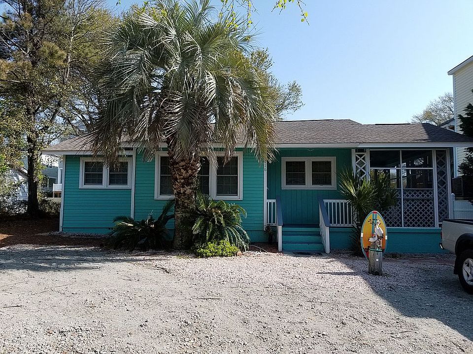 This is the cutest beach bungalow in Surfside Beach with original hardwood floors and knotty pine paneling. It has recently been updated with new flooring and countertop in kitchen, window treatments, bathroom, and fresh paint. The backyard hosts a patio with picnic table and grill and one of the oldest live oaks in Surfside Beach. The porch is screened to catch the ocean breezes. View the ocean from the mailbox which is just 150 steps away. HVAC, appliances, and water heater are less than 5 years old. There is an additional 440 square foot cottage on the property which was totally gutted and remodeled in 2012 with a full size kitchen and handicap accessible bathroom.