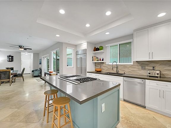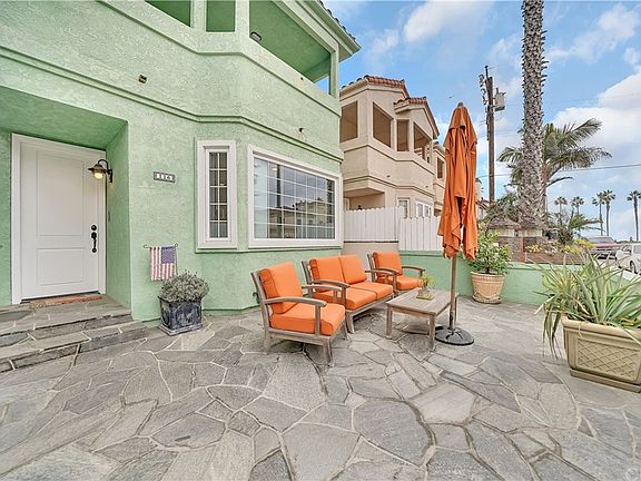 Welcome to this beautifully designed and renovated Downtown Huntington Beach home in a prime location less than 1 block to the beach. This is true beach living with 2 balconies, large roof deck, side yard patio with outdoor shower and elegant stone front patio to entertain guests. Hear the crashing waves and enjoy breathtaking views of the ocean, whitewater and spectacular sunsets. The downstairs level offers an open floor plan with gorgeous travertine flooring, a stunning gourmet kitchen featuring shaker cabinets, quartz countertops, stylish wave backsplash, Sub Zero refrigerator, Wolfe double oven with convection feature, ASKO dishwasher, Franke farmhouse sink, and center island with Wolfe 4 burner stove with grill and barstool seating. The kitchen opens into the family room and dining room with elegant guest bathroom, laundry room and sliding door access to the side yard patio, perfect for entertaining. The upper level features bamboo flooring, large master suite with private ocean view balcony, hallway bathroom with shower/tub and two additional spacious bedrooms, one with its own balcony. Also upstairs is a family room that includes a wet bar with refrigerator, sink, microwave and entrance to the stairs up to the expansive roof deck with beautiful ocean and downtown views. This location is undoubtedly one of the most desirable in the city within a short walking distance to Main Street, casual and fine dining, the Pier and shopping at Pacific City. This is a Must See!