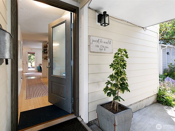 Absolutely darling, 2 BR townhouse-style end condo in a boutique building close to Seattle's best neighborhoods. Downtown, Leschi, Capitol Hill & more are all mere blocks away. No need for a car w/ this central location, but a dedicated off-street parking spot is yours, along w/ a storage unit. Light & bright, freshly updated & painted, w/ new carpet, this home is swoon-worthy. Lower level has bamboo floors & updated kitchen with breakfast bar & new range, microwave & dishwasher. Spacious living room opens to the pièce de résistance: a huge, private fenced outdoor oasis with mature plantings that makes you forget you are in the heart of the city. Upstairs are 2 spacious bright bedrooms, an updated full bath & laundry. This home has it all!