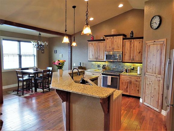 Absolutely gorgeous Silverstone custom built home. 5 bedroom, 3 baths. Rustic hickory cabinets, acacia hardwood floor, trimmed out with Douglas fir beams and barn wood insets. Over sized three car garage with extra workshop area. Granite counter tops and high end lighting throughout. Walk in pantry. Gas fireplace and stainless appliances. Custom blinds and wired for sound. You will love the ''secret room''!