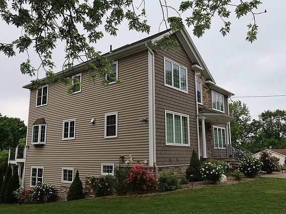 Positively stunning masterpiece in a much sought-after location. Majestically sited on almost six acres of land in one of the most desirable neighborhoods of the town, this elevated, elegant and modern home will make an impression at every turn. Built with the utmost integrity and meticulous craftsmanship, the layout is designed with modern luxurious lifestyle in mind. Open floor plan with astonishing tray ceilings, highlighted by the large kitchen with oversized island, flowing into the dining room with sliders to the deck and yard and breathtaking living room. The first floor also has a private home office as well as a bedroom suite. Palatial master suite with private balcony and lavish master bathroom. The second floor has two more bedrooms with full bathroom plus a laundry room. Spectacular in-law suit on the lower level with plenty of storage space. Tremendous grounds out back afford the opportunity to create your ideal setting for outdoor leisure, recreation and entertaining!