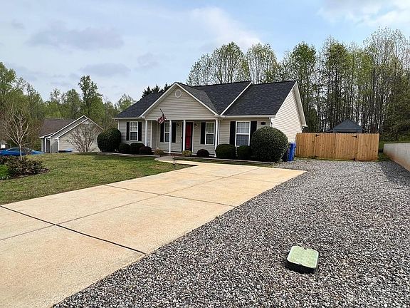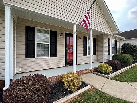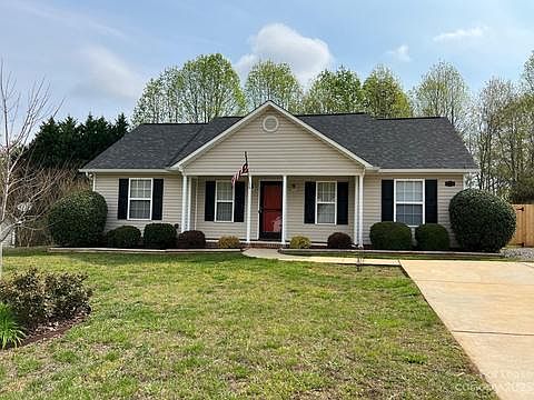 MOVE-IN READY RANCH home near Downtown Troutman! This one level home has a split bedroom plan with the main living area in the middle with Living Room with vaulted ceiling, open Dining area with cabinets, and a galley style Kitchen with new refrigerator, electric range/oven and microwave. The Laundry Closet is just off the Kitchen area and has Washer/Dryer. There are 3 Bedrooms and 2 Full Baths including the Owner's Suite with tray ceiling, two closets and an updated Bathroom with dual sink vanity and shower/tub. Enjoy a Front Covered Porch, Rear Concrete Patio, Covered Wooden Patio, Fenced Yard, Storage Building and a little Playhouse. The neighborhood does not have an HOA, and there is ample parking for a 2-3 vehicles and/or a trailer in the added gravel parking area. Tenant is responsible for all utilities and lawn maintenance. No Smoking, No Cats allowed and 1 Dog under 40-lbs at adult weight is conditional with a non-refundable pet fee. No puppies under 1 year old. AVAILABLE NOW!