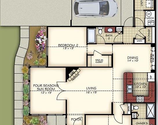 2 Bedrooms & 2 Bathrooms plus 4-Seasons room and 2-Car Garage with 1,718 Square Feet. Majority-brick exterior and board and batten accents with high-pitched roof lines, 30-year shingles and quaint, outdoor patio. Interior Features: 42” maple cabinets with granite counters, Hardwood floors in Foyer, Living Room, Dining Room, 4-Season’s Room and Kitchen; Ceramic tile in Laundry and Baths, Stainless steel appliances, and 2’-10” interior doors for accessibility, Adult-height vanities and comfort-height toilets. First-class architecture with majority-brick exteriors and cozy outdoor space with iron fence.