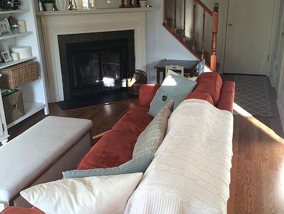 Freshly painted END UNIT Townhouse for rent featuring completely new bathrooms with granite counters, updated Kitchen with new appliances, new wood floors, wood burning fireplace, two parking spaces, private Patio area and more!