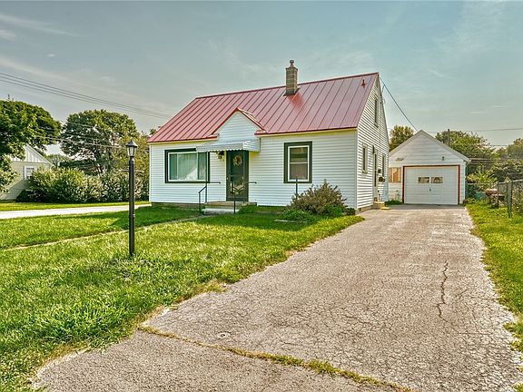 Charming Cape in Greece, NY! Looking for easy living? Here it is! First Floor Laundry Room, Spacious kitchen and living areas and 3 good sized bedrooms! Detached garage with porch(needs TLC) with great potential for extra outdoor living! Very clean and move in ready! Newer windows, Metal Roof, Furnace 2023, AC 2024, Water Heater 2022. Don't Miss this!