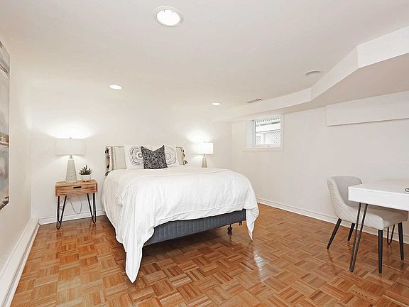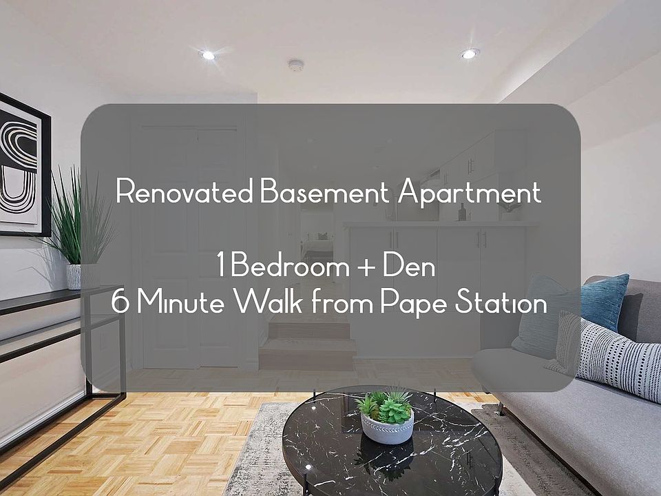 Unit: Newly renovated 1-bedroom + den basement apartment in Toronto's Greektown, just minutes from Pape Station. The unit features a private entrance, full kitchen (fridge, stove, dishwasher), in-suite washer/dryer, and a spacious bedroom with ample storage. The den works well as a home office, study, or hobby space. Natural light from the bedroom window and front door also brighten the space