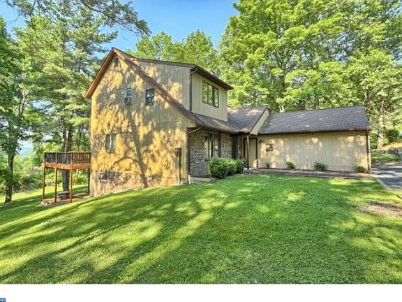 Country and Convenience! Unique wood and brick 4 bedroom, 2.5 bath Contemporary Two Story sitting on over 2 acres provides the privacy you are looking for yet very close to necessary conveniences. Enjoy the view from the upper wraparound deck or below on the brick patio with fire pit. This home has a nice decor throughout and is in great shape. Tile entry enters into main floor with large Living Room - formal Dining Room with sliders leading to large wraparound deck - beautiful Kitchen with hardwood floor, double stainless steel sink, tile backsplash - Family Room with wood burning stove and ceiling fan - Powder Room. 4 private Bedrooms upstairs each with plenty of closet space. Master Bedroom with sliders to upper balcony. Finished basement adds additional living area with Family Room/Rec Room with 2nd wood burning stove and bar. Beautiful bathrooms. Much more can be said but come see for yourself.