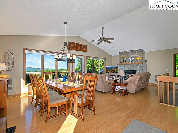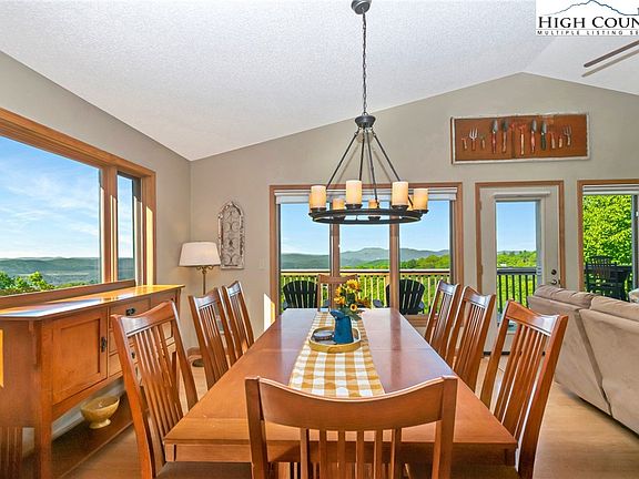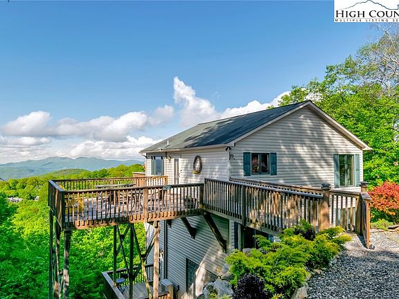 Spectacular views greet visitors and owners to this large home immediately upon arrival, from the parking to the 4 decks to almost every room in the home situated in a paradise mountain setting. Layers of year-round, layered mountain views (permanent view protection) to enjoy year round. Room for everyone with 4 BRs, 4 BAs, a family/game room with pullout couch, 2 mini splits for a/c and heat, furnished with few exceptions. Level parkng for up to 4 vehicles. Enjoy hiking, waterfalls, swimming holes, whitewater rafting, tubing, fishing, skiing, snowboarding, golfing and festivals all on or around Beech Mountain. Wildlife abounds on Beech Mountain so you are bound to see the deer, turkey, rabbits, chimpmunks, humming birds, bear, fox and other local creatures. The views change with weather and the seasons so that no view is every truly the same and include clouds moving in and out, sunrises that catch your breath, fall leaves that show off amazing colors and beautiful snowscapes. Stars are mesmerizing and beautiful to watch from any of the 4 decks. Club and town memberships are available for a variety of activities including pickleball, golf, pool, clubhouse dining, tennis and more.