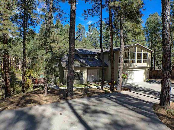 This beautiful Ponderosa Estates home stands out from start to finish. You will love the private & natural setting on this .7-acre perimeter, tree-filled lot. This home is spacious, bright & relaxing. It has an awesome open floor plan that is perfect for both entertaining and day-to-day living. Expansive windows offer great natural light throughout. The huge living room features soaring vaulted ceilings, a focal point fireplace and more. There are beautiful forest views from most of the spaces. Just off the living room is a well-designed, spacious kitchen that has two dining areas and direct access to the back patio and deck. There is a nice family room and lovely half-bath just off the kitchen. Heading upstairs you will find three bedrooms plus a fourth guest room that works well as a fourth bedroom. Overlooking the forest, the large master suite has a spacious and relaxed vibe. The private master bath offers double vanities, jetted tub and separate shower. The two guest bedrooms are serviced by a large full bath. Just down the hall is an extra guest room and laundry room with plenty of storage and laundry sink. Another hallmark feature is the incredible home office, library an/or studio. With vaulted ceilings and panoramic windows, this area has to be seen to be appreciated. The huge lot offers a great place to relax, entertain and play. Plus there is a two-car garage, extra parking and a large dog run. It's an easy walk to the golf course & numerous nearby hiking trails.