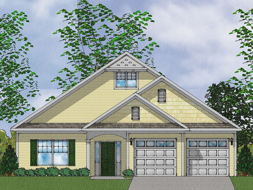 This Edgewood plan has a pond view! The wide entry and hallway with decorative tray ceilings with crown molding and judge panels leads you into the living area where the soaring vaulted 12' ceilings in the great room, eat-in dining, and kitchen provide the open and airy space you're looking for! With 1,910 heated square feet and three bedrooms, the fine home features an indoor fireplace, a gourmet kitchen layout, and a walk-in pantry. The large 20x10 covered rear porch provides the perfect setting to look out to the pond. Among the home's other features are stainless steel appliances, staggered cabinets with crown molding, upgraded pendant lights, tile backsplash and quartz countertops, luxury vinyl plank flooring in living areas, carpet in bedrooms, tile flooring in baths, large 60" x 60" tiled shower and comfort-height vanity with drawer stack in the primary bath, framed mirrors in all baths, and more!