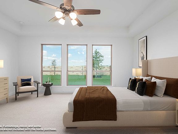 MOVE-IN READY! Welcoming entry framed by home office with French door entry. Island kitchen features a built-in seating space, 5-burner gas cooktop and a large walk-in pantry. Family room with a wood mantel fireplace and three large windows extends to the dining area. Private primary suite with three large windows. Primary bathroom offers a French door entry, dual vanities, garden tub, separate glass enclosed shower and a large walk-in closet. Secondary bedroom offers a walk-in closet and a full bathroom. Second floor hosts a large game room and secondary bedrooms. Utility room. Covered backyard patio. Two-car garage.