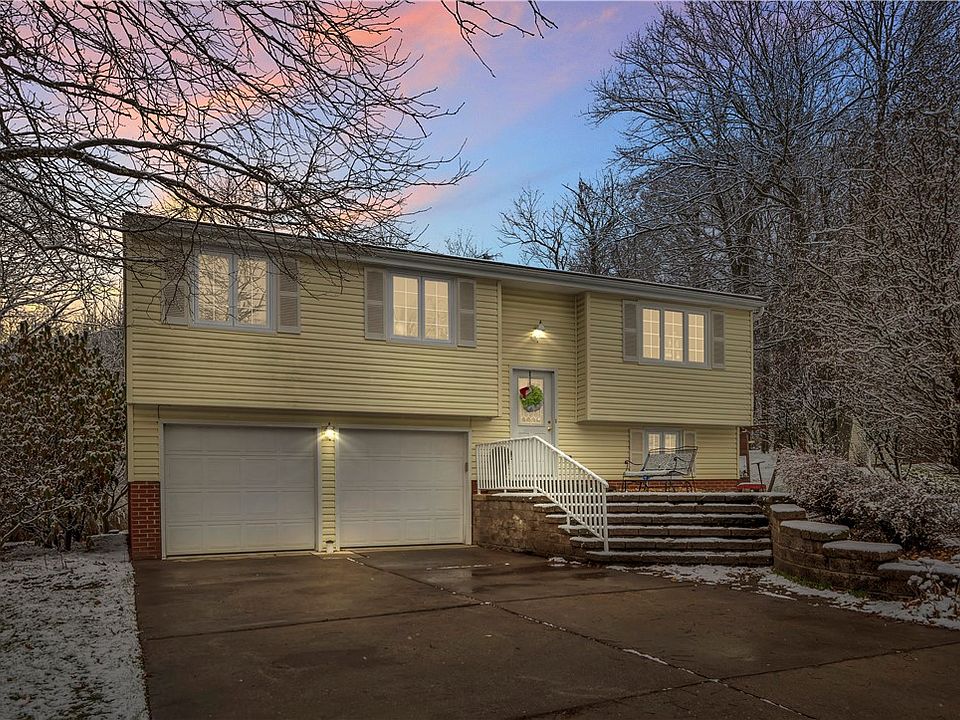 Discover the perfect balance of comfort and contemporary living in this beautifully maintained split-entry home. The professionally landscaped yard features a spacious stone patio with a pergola, creating an inviting space for outdoor entertaining or quiet relaxation.