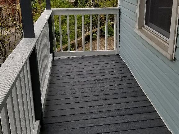 House has a parking pad for 1 car (2 smaller vehicles can park tandem), a rear patio and front porch.