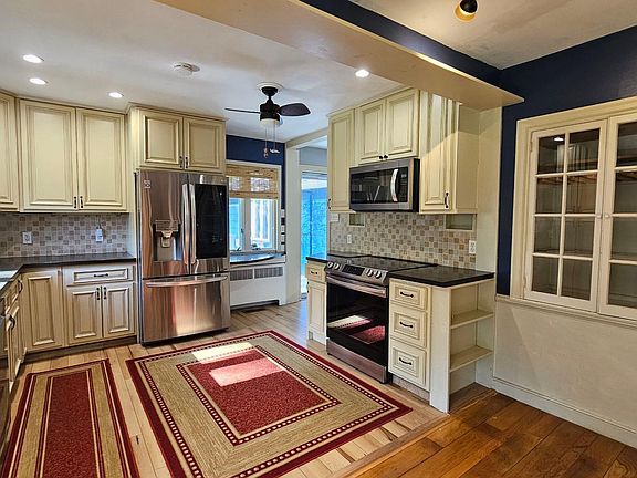 This spacious executive-style ranch home sits on elevated ground with mature landscaping that overlooks the winding asphalt driveway situated on approximately 3.6 acres of land with a small stream. This home greets you at the front deck providing access into the foyer area where you will find a stepdown living room with a large fireplace and hardwood flooring providing a warm and inviting space. Adjacent to the living room is the family room featuring a wet bar and an abundance of windows allowing natural lighting to flow through the room while allowing scenic views of the backyard that is partially fenced. The kitchen has beautiful, glazed cabinets, a window over the double bowl sink, stone countertops, tile backsplash and stainless-steel appliances open to the formal dining room featuring a built-in cabinet. On the left side of the home is where you will find the primary bedroom boasting hardwood floors, walk-in closets and a private en-suite bathroom. The hardwood floors continue through the hallway into the second bedroom, off the same hallway is where you will locate a bathroom with an oversized shower with glass doors. On the opposite side of the home, you will find the third bedroom featuring a fireplace along with built-in shelving which may make this room suitable for a home office or den with an adjoining room providing additional space. Access to the laundry room and attached garage are conveniently located off the kitchen in addition to access to the side deck, a perfect place to enjoy nature with your morning beverage! Kitchen appliances have been updated within the last 5 years except for the refrigerator. The furnace and air conditioning units have been updated within the last 3 years. The roof was replaced in approximately 2012. The septic system was updated in 2019. The windows in the Family Room along with the Front and Back Doors, including storm Doors, have been replaced. Call today for your appointment to see this great property!!