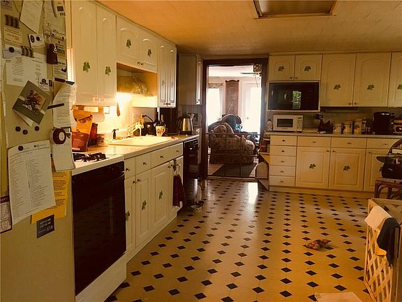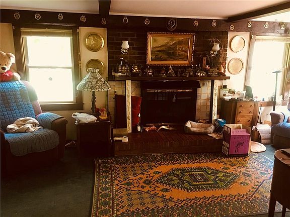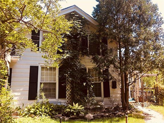 Cute 3 bedroom house nestled back on a quiet private road all on 1.3 acres. First Floor master bedroom with x-lg walk in closet. 2 livingrooms both with gas fire places. 1.5 bathrooms plus a bonus fully enclosed sunroom! large brick patio and back wooden deck provide plenty of outdoor living space during warm fingerlakes summers. Oil fueled forced hot air heat and Central AC. Needs some clean up and TLC to restore beautiful perennial gardens ect.