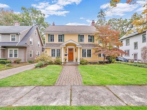 Welcome Home! Situated in convenient Circle Park neighborhood, you'll find this Center Hall Colonial w/ superb curb appeal! The renovated kitchen is the heart of the home w/ white cabinets, quartz counters, ss appliances & is seamlessly open to the dining room. Off the kitchen is a powder room & rear-entry w/ built-in storage to keep the backpacks & jackets organized & out of sight. HW floors carry you to the front to back living room w/ wood burning FP & gorgeous built-ins. Off the LR is a sun-filled zen space, perfect for your Peloton or home office. The second floor has 4 bedrooms, including the large primary w/ full bathroom. A finished third floor offers a great playroom or guest BR. Lower level is partially finished w/ a wet bar for entertaining. The rear yard is low maintenance w/ space for games on the brick paver driveway! Architectural roof, Utica Boiler, generator, 2 car garage, mini splits throughout for heat & AC & sunburst plantation shutters all add peace of mind & value