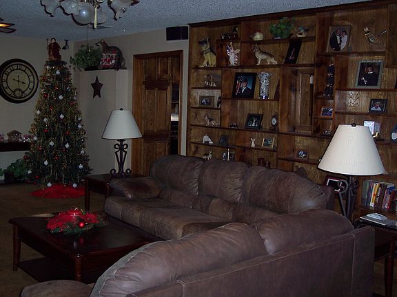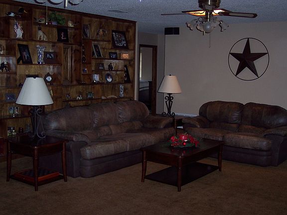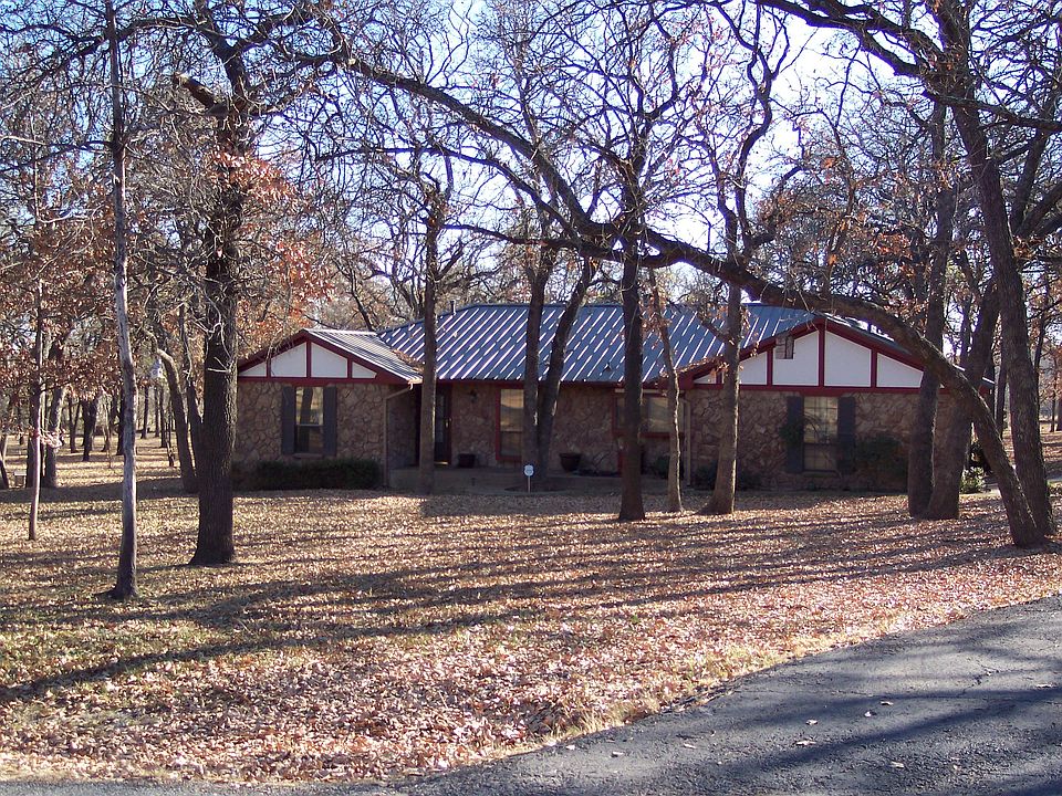 Split bedroom home nestled on 2 acres with beautiful oak trees. Located in Oakwood Estates, outside of city limits but close to town. Wood burning fireplace, gas stove in kitchen and an abundance of cabinet space. Large redwood deck for entertaining, dog run and a greenhouse for the gardener in the family. Located about 30 minutes from Lockheed Martin and Fort Worth.