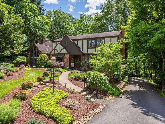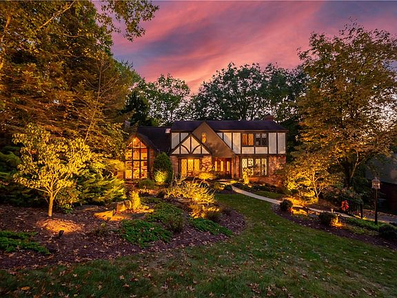 THIS PICTURESQUE TUDOR STYLE HOME EXUDES CHARM & SOPHISTICATION! The back yard at 116 Bethany Dr..its the epitome of a parklike oasis. The professionally designed landscaping includes a koi pond*gazebo*firepit area..all paired w/lush grass & trees. Don't miss the turf dog run! Step inside & you'll fall in love w/ the new ceramic tile from the entry to the kitchen & living rm. Remodeled kitchen: Quartz counters, 12' island, tile backsplash, drawer microwave, Monogram gas range, window seat, closet pantry w/custom drawer storage (all 4yrs young)! Living room w/access to balcony&custom built-in w/fireplace. Dining rm & office (new wood floors)+updated 1/2 bath. Cathedral family room w/wood floors*fireplace*french doors to sunroom*exposed brick wall*1of2 staircases to a balcony w/french doors to primary bed. Fully remodeled luxury bath w/custom steam shower in the primary bed. 3more beds*full bath*laundry complete the upstairs. Lower level: 2 gamerooms & new full bath. Peters Twp Schools!
