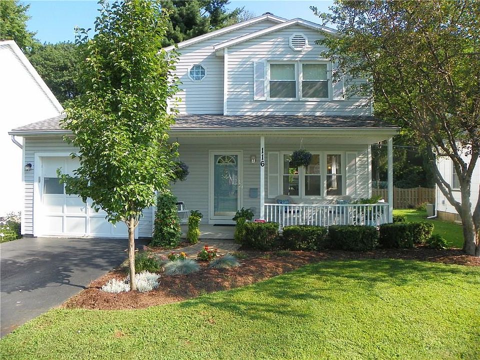Totally updated '93 built colonial! This home is a "10"!! Better Homes & Garden beautiful! Lots of natural light, neutral colors, incredibly landscaped outside! Relax on 1 or 2 decks or the private backyard patio. Super quiet street backing up to Durand Eastman Park! Walking trails nearby, Seabreeze, Durand Eastman Beach, restaurants, and quick expressway access. Close to city of Rochester and all it has to offer. This home is meticulously maintained and you will enjoy all its outdoor living space! The home has new replacement windows throughout and updated bath and 1/2 bath. So close to beautiful Lake Ontario. This home has it all, a finished basement, open living and dining, covered front porch, Central Air, and gardens all around the whole house! This is truly a great gem!
