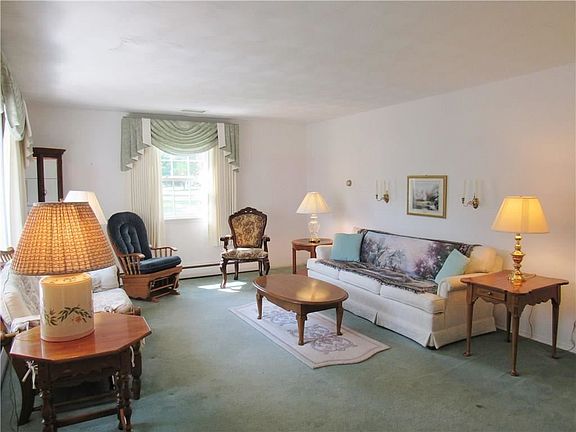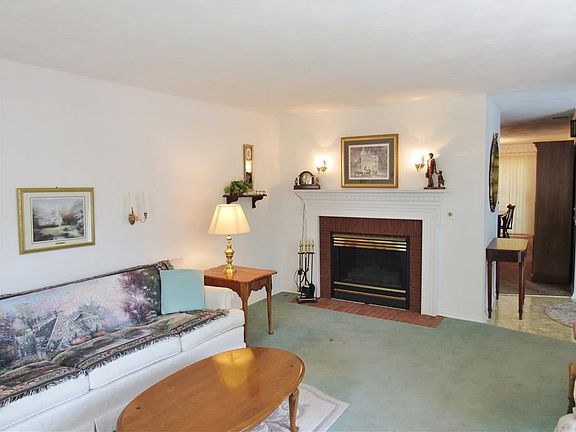 Wonderful L-sharped ranch with 2 gas fireplaces- one in the living room which has a lovely Bay window, the other fireplace is in what most people would use as the family room (presently set up as a large dining room). Hardwood flooring under carpeted areas in the home- except the family room! Property has a hot water baseboard system plus a separate AC system for the entire home. Enclosed front porch with front patio. Patio in rear yard. Garage has drywall and a drop ceiling. Glass block windows in basement. One year home warranty plan!