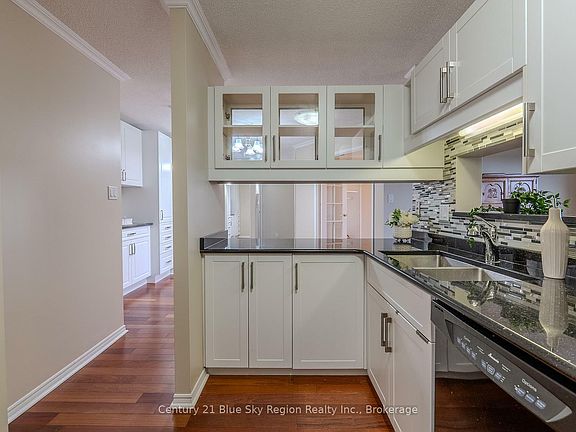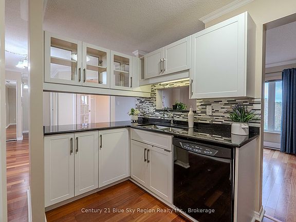 This is a sought after building that comes with a pool, exercise room and party room. One parking spot. It is a one bedroom plus a den with open concept kitchen, living room and dining room. Beautiful grounds and well taken care of.