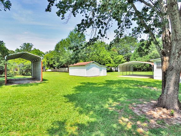 Welcome home! Huge front porch, perfect for a swing & coffee sipping, spacious great room w/ built-in bookcases, fireplace w/ gas logs. Opens into dining rm & kitchen. All appliances remain. Hardwood flooring under carpet. Enjoy the sunroom overlooking the large fenced back yard. Double lot, priced of one. Middle of town! Carport, huge workshop and another metal RV cover. Alice Drive schools.