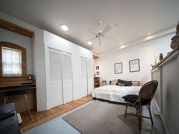 Boerum Hill Carriage. House. They are few and far between and this one's a beauty. 1,100 sq, ft of renovated space that flows inside and out. Enter the 11 ft vaulted ceiling foyer from private, gated courtyard. Off the foyer is a large kitchen-dinning area with lg east oriented windows. Stainless appliances and industrial style sink. An operable gas fireplace is a warming winter touch. There is a full bath and a laundry room adjacent. Taking advantage of the high ceilings is an overhead loft bed with library ladder. On the other side of the foyer is the skylit bedroom and living room with polished cement,radiant heated , floors. and exposed brick walls . Rear windows give to garden. Entrance to private garden and secluded patio is thru a set of antique french-doors at west end of foyer. Mechanical s have been updated and central air recently installed. amenities incl. dishwasher,w/d and secured storage for bikes. Apt is located on a tree lined land-marked block,convenient to shopping, transportation and restaurants. walking distance to Brk Bridge Park, and Bam