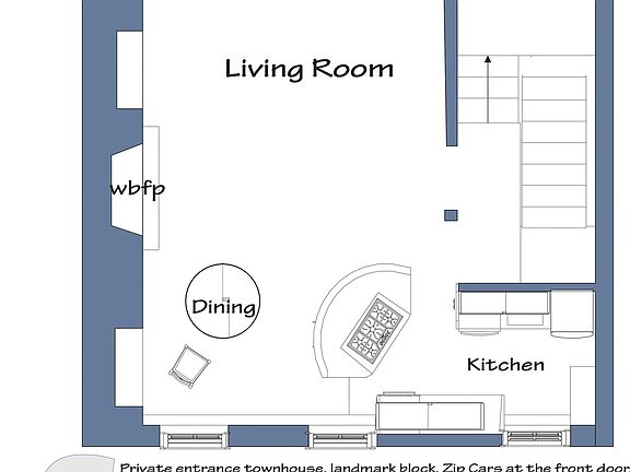 Boerum Hill unusual private entrance brownstone townhouse Handsome restored townhouse in center Boerum Hill on landmark block. Private entrance opens to foyer with closet, and sufficient room for bike or stroller storage. On second level, the parlor floor, is the living room with working fireplace and french doors gives to a balcony with stairway to garden. Dining area, and island with cook top is open to the kit. with 3 large east facing windows. Appliances and cabinets are new. Second floor has 2 bedrooms , with good closets and a full bath with shower. and washer/dryer On the third floor the master bedroom has beamed ceiling, decorative frp and walk in closet. The master bath is large with double sink and window. There is also a study or guest room with stairs to roof. Location is excellent off downtown Brooklyn near everything,subways, shopping ,dining and walling distance to Brooklyn Bridge Park , Bam cultural area, and Barclay Center. Amenities include central heat /AC .storage and several outdoor spaces.Draft rental description