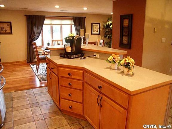 You do not want to drive by this one! You'll find this home well cared for, owners are very meticulous. Many custom features including crown molding and custom wood work. Beautiful spacious open floor plan split with an abundance of living space. Custom maple kitchen opens to large formal dining room w/ hickory floors and has island and breakfast bar. All season great room w/ vaulted ceiling. skylights, hardwood floors and lots of windows. Large family room w/ fireplace and office. 2nd floor has spacious bedrooms and full bath. This home is complete with a finished lower level featuring a family room, bedroom and full bath/laundry and walks out to a private patio. Large yard with a well maintained lawn. Low utility bills with Solvay electric! This house is move in ready!