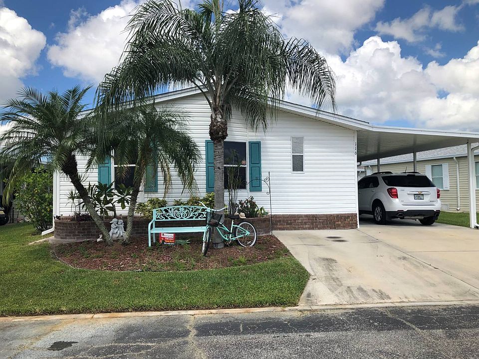 This is a must-see 2003 Jacobsen home that has a water view from the lanai, living, dining and kitchen with 1344 sq. ft. in living area. This home has two bedrooms with two baths. The air conditioner was replaced in 2015, roof in 2017 and water heater in 2018. The living room, dinning room, and kitchen are all in an open floor plan and are exceptionally large rooms. The kitchen has an island, newer appliances, and a lot of storage. The laundry room is in the home with cabinets for more storage. Living room and dining room have laminate flooring. No popcorn ceilings and all doorways are rounded. This home also comes with a GOLF CART. If you are ready for a stress-free life, then you need to come to The Gardens. This 55+ community is a activity community with tennis courts, Olympus size swimming pool, spa, exercise room, ceramics, darts, chair volley ball, horseshoes, darts, all types of cards, library, ball room, full industrial kitchen, new outside kitchen, fire pit and many many more things to do in The Gardens. The Gardens is a one dog friendly neighbor with no size restrictions. The lot rent on this home is $792.00 per month and that includes mowing, edging, trimming, 2 HD boxes, 200 cable channels and HIGH-SPEED INTERNET. All listing information is deemed reliable but not guaranteed and should be independently verified through personal inspection by appropriate professionals. Integrity Mobile Home Sales cannot guarantee or warrant the accuracy of this information, measurements or condition of any property. Measurements are approximate. Lot rent subject to change.